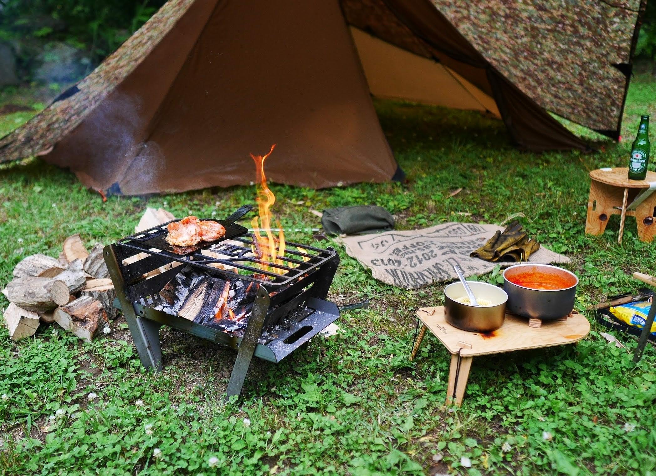 「写真の真ん中で、主役を張るものを作る」ということでYOKA GRIDDLEが生まれ、焚き火台が生まれてきたわけなのですが、キャンプのシチュエーションの写真を撮るとなると、上の写真のように半分はテントが入ってくることになります。