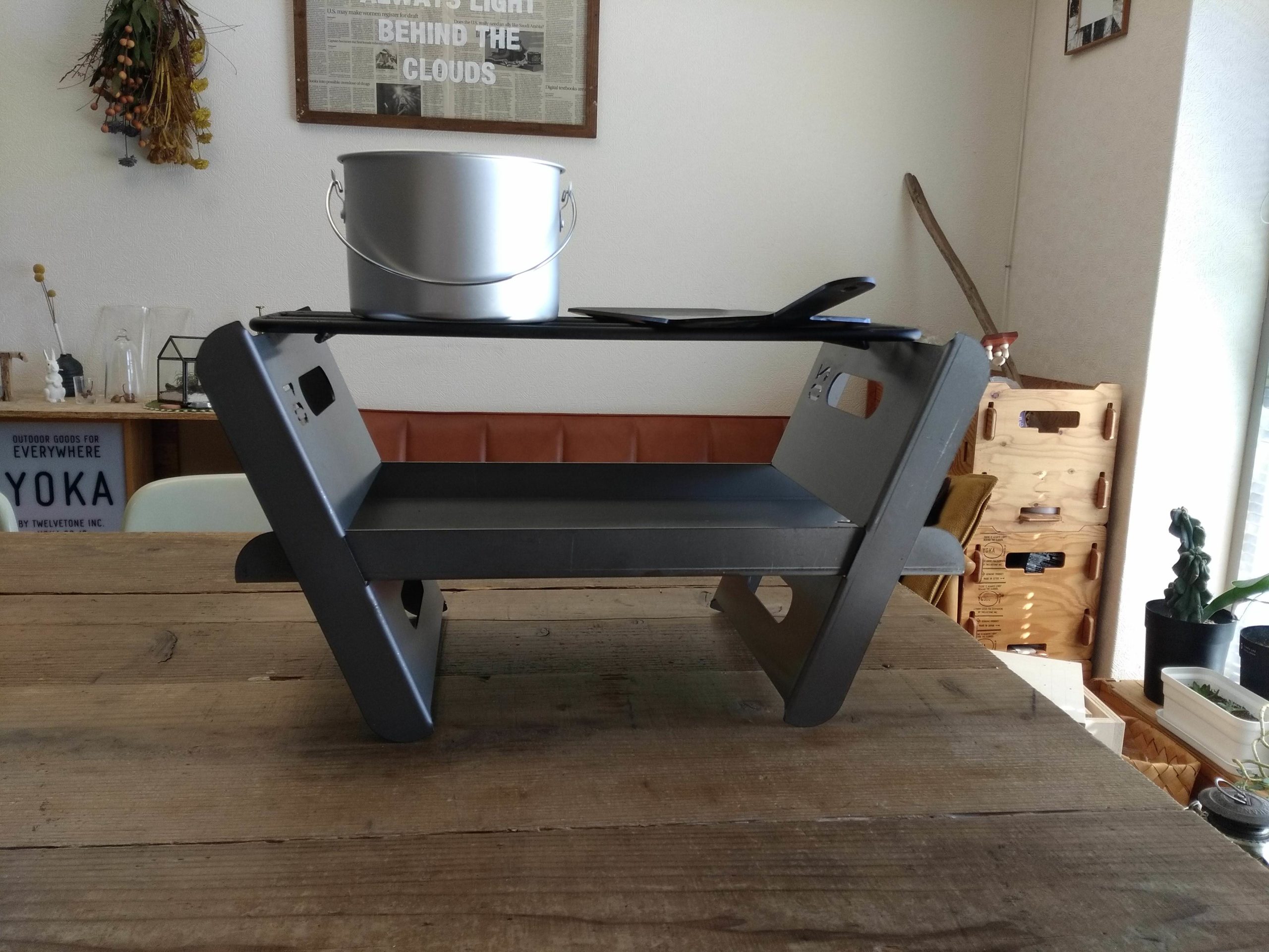 でも、思いついてしまったんです。YOKAの家具のように、バラして薄くたためて、組み立てるとかっこよくて、使い勝手も良い焚き火台を。