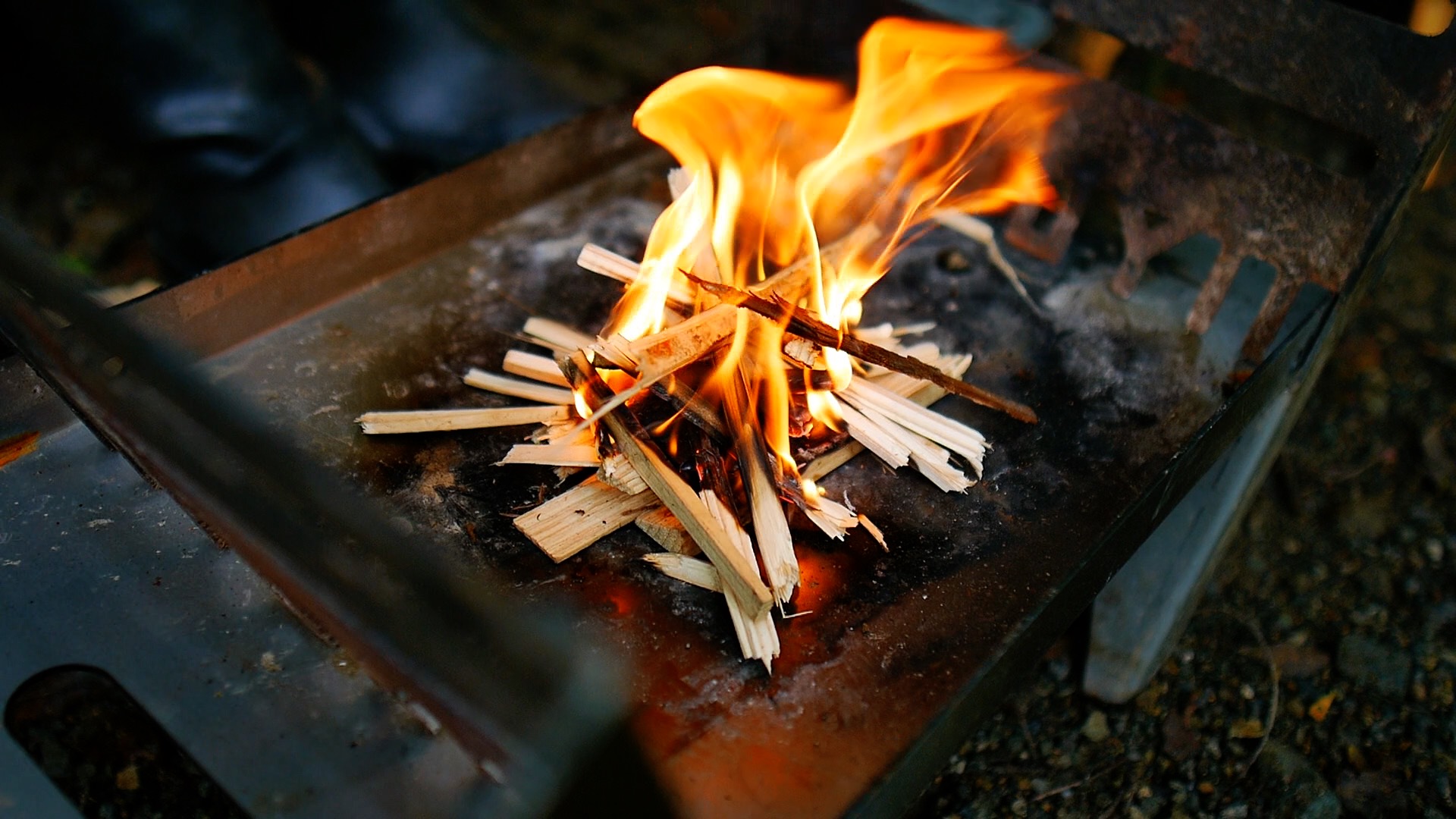 例えば着火剤の代わりに麻ひもを使ったり、フェザースティックを削ったりするのも楽しいのですが、今回そこは省きます。