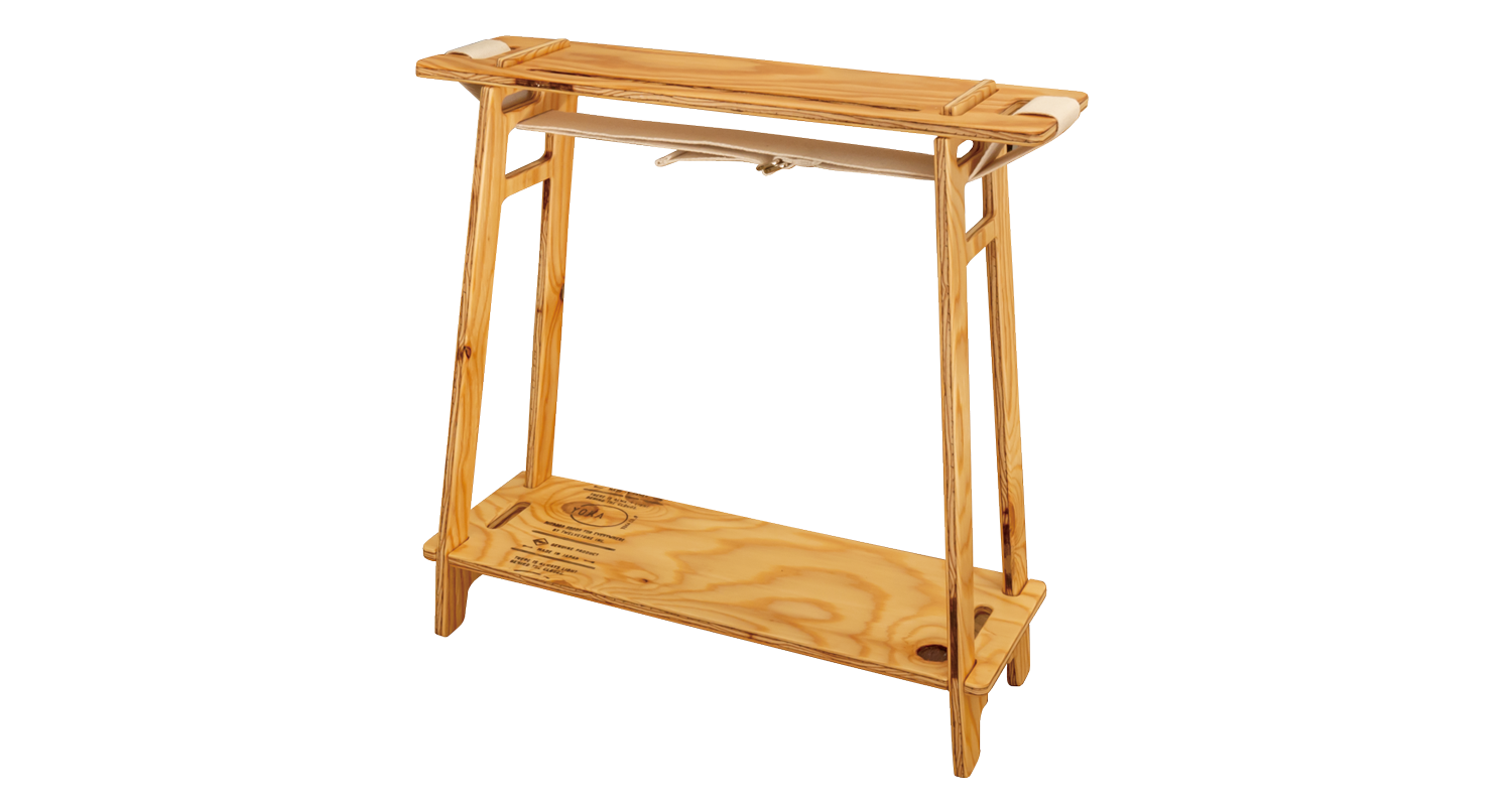 ミニシェルフ 大きさ:組立時:380x130x380mm 収納時:380x130x36mm 素材:針葉樹合板 板厚:9mm 重量:700g 付属品:コットンベルト ご購入はこちらから →MINI SHELF